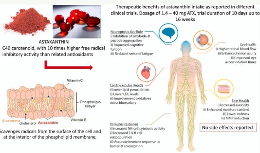 Astaxanthin is one of nature’s most powerful antioxidants, shown in clinical studies to support skin, eye, heart, and immune health. By neutralizing free radicals and protecting cells, it helps maintain smoother, firmer skin, enhanced moisture retention, and long-term vitality.